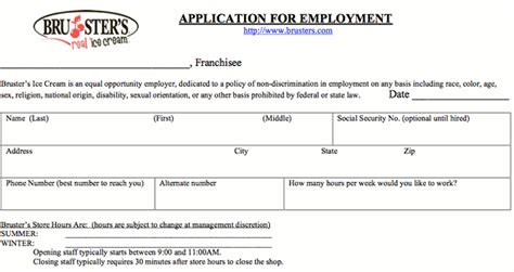 Brusters Application Form . A quick and easy process, finding work with bruster’s usually involves filling out a hiring form and waiting for a call back from management. The bruster job application form is a comprehensive document designed for individuals seeking employment within the bruster’s ice cream franchise.